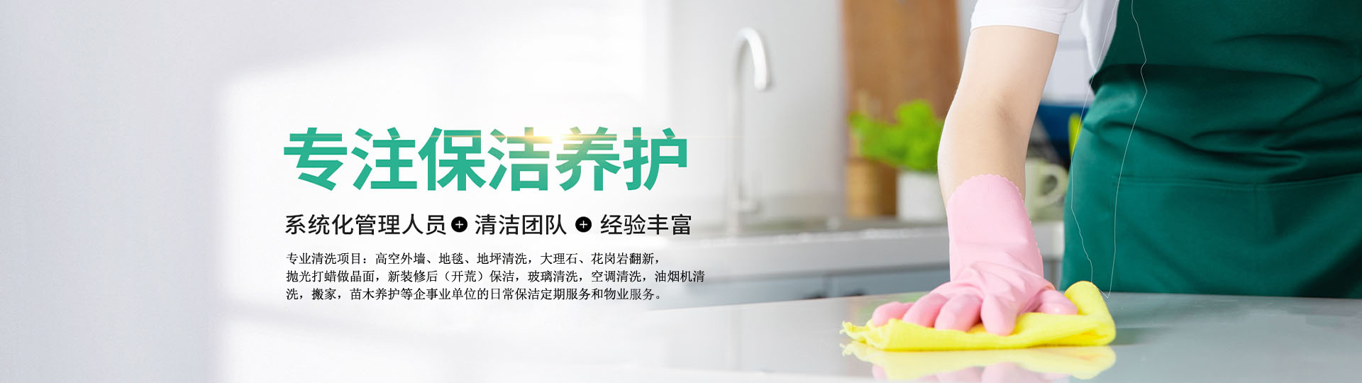 ??公司主營(yíng)業(yè)包含高空外墻、地毯、地坪清洗,大理石、花崗巖翻新,拋光打蠟做晶面,新裝修后(開(kāi)荒)保潔,玻璃清洗,空調(diào)清洗,油煙機(jī)清洗,搬家,苗木養(yǎng)護(hù)等企事業(yè)單位的日常保潔定期服務(wù)和物業(yè)服務(wù)。